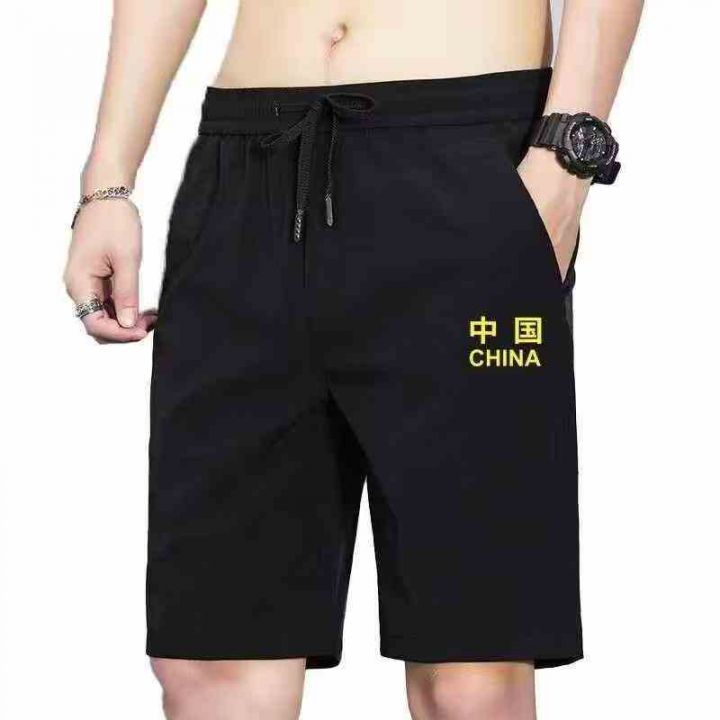 新款中国标印花男士休闲运动健身短裤潮流流行休闲五分裤,独立包装,均码,187件,全清5.5