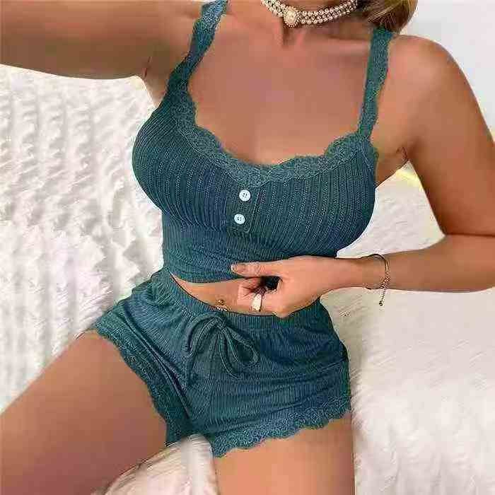 欧美辣妹时尚性感吊带上衣➕短裤睡衣家居服2件套装 部分可自行配套码数:S...