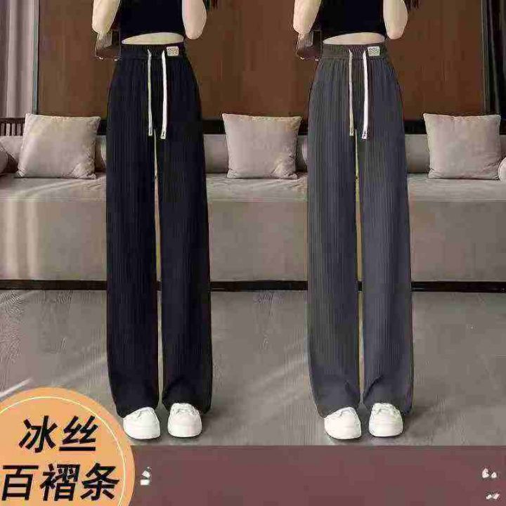 女装百褶条休闲直筒冰丝裤,面料很好,垂感十足,440...