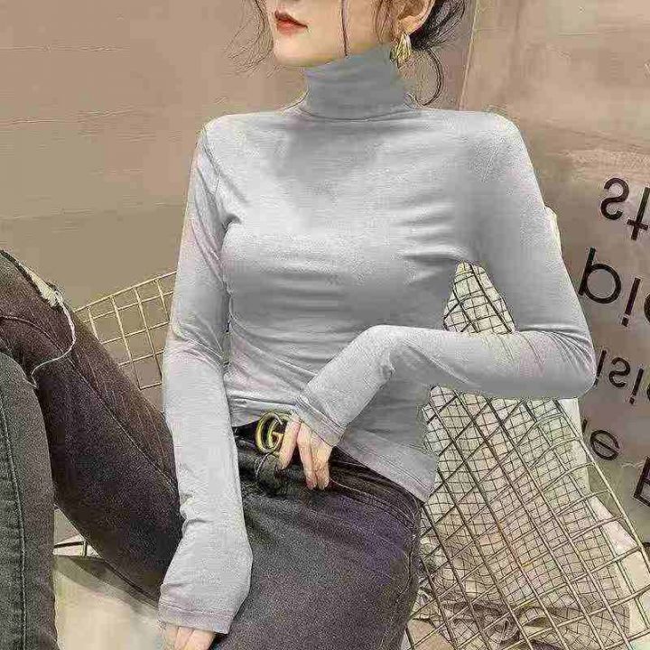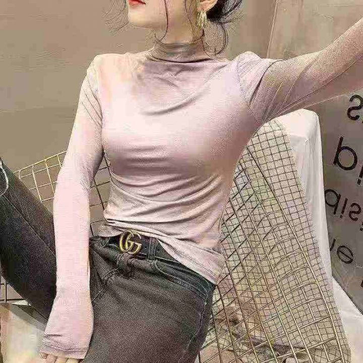 ☕️高弹力面膜打底衫女长袖t恤半高领春秋冬新内搭洋...
