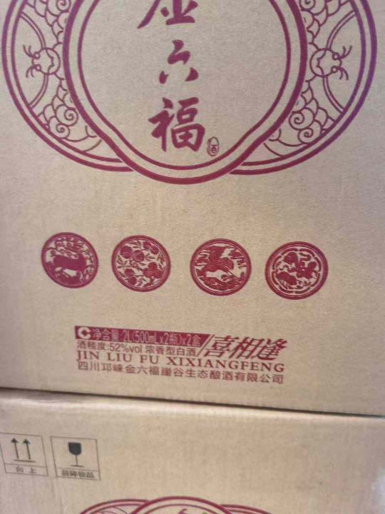 原价 1800 元一箱的金六福白酒,10箱起发180元,一箱起发190元!一箱4 瓶,52度浓香型白酒,一箱2提,一提2瓶,优级纯粮酒,。 货号:29195