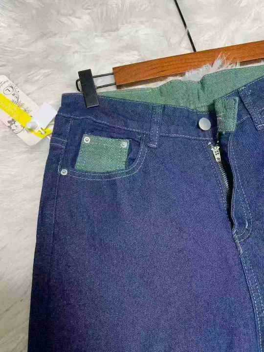 韩国代购女装 弹力牛仔蓝绿色翻边裤脚老爹牛仔裤228件,独立包装带吊牌,尺码L~4XL,全清福利价9.9元分货➕1