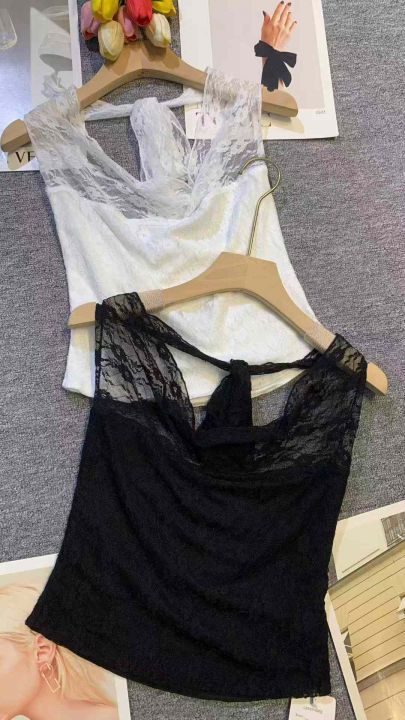 上新全清:5.8一件纯欲风甜辣蕾丝荡领挂脖两穿抹胸上...