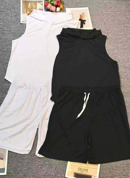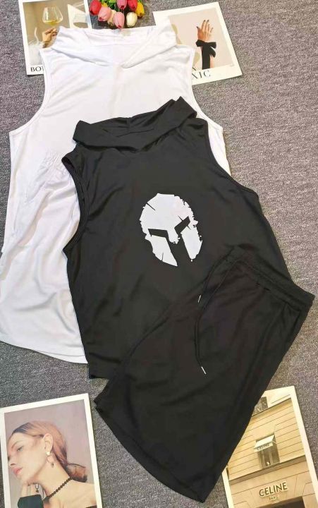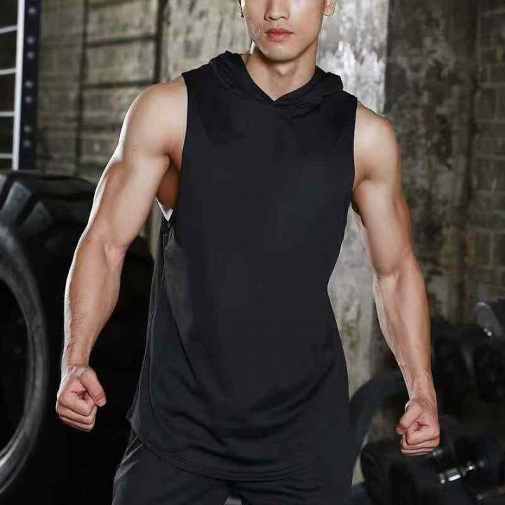 纯色运动健身无袖连帽透气速干T恤套装,[爱心]370套左右,黑色连帽为主,码数S-2XL,穿80-150斤,[666]工厂原包装瑕疵,分货加一