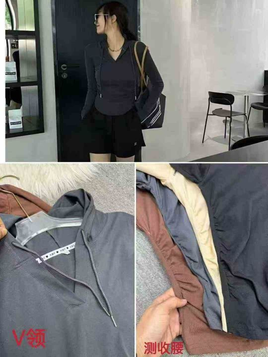 连帽卫衣修身显瘦正肩T恤小众气质长袖收腰上衣,独立包装,码数M-3XL,数量352件,分货加1,货号125#58