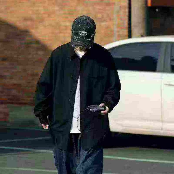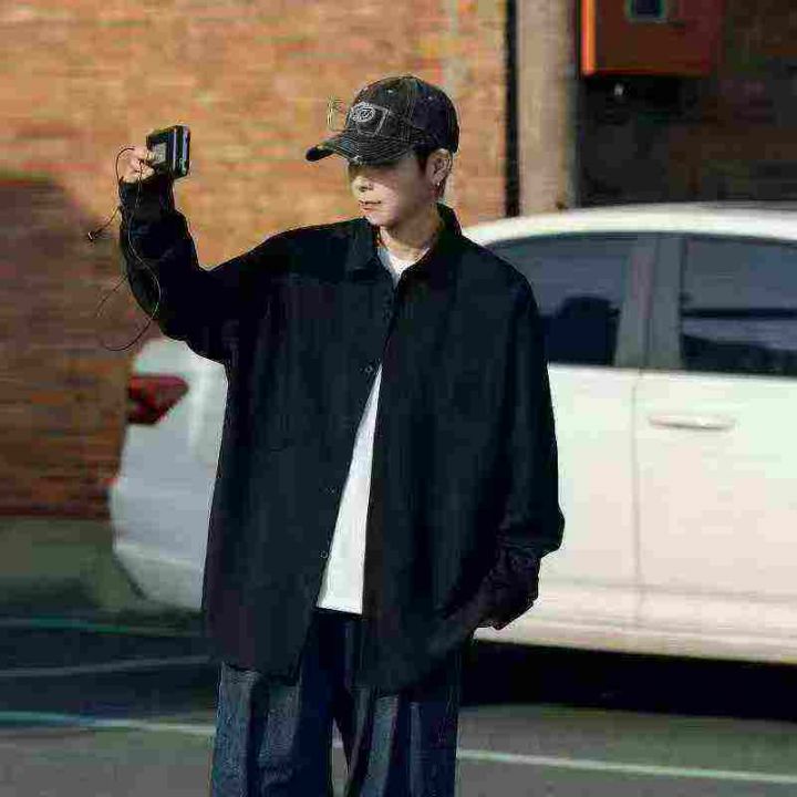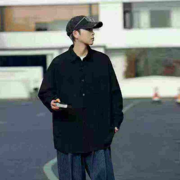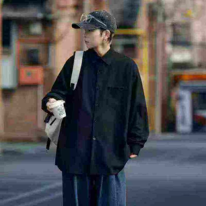 新款痞帅高级感长袖衬衫男春秋款设计感小众纯色百搭衬...
