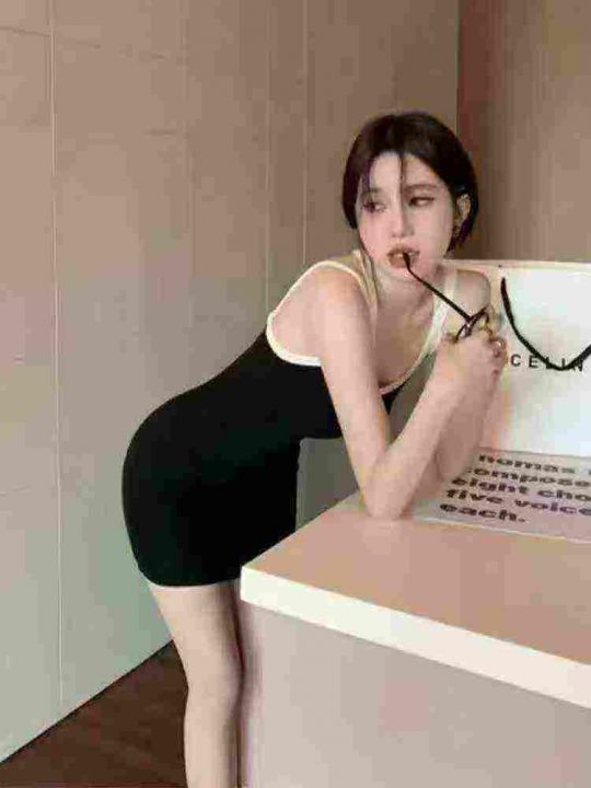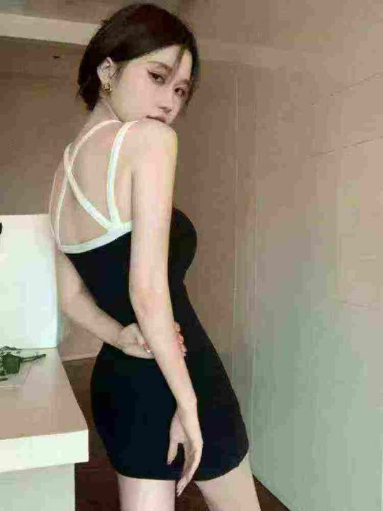 辣妹黑色撞色吊带连衣裙女装夏季新款性感露背修身无袖收腰包臀裙 独立包装 码数1-4码 数量450件 全清6.5 分货加0.5