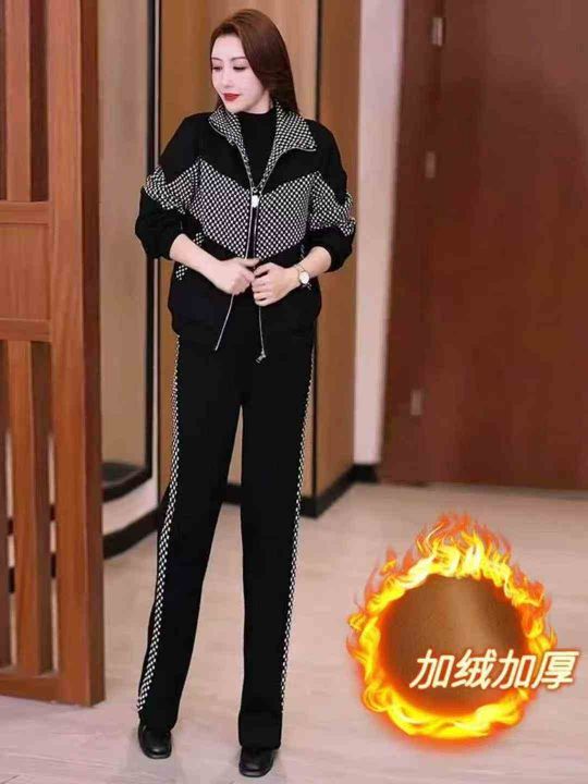 全清价11.8加绒加厚休闲时尚格子拼接立领外套阔腿裤两件套潮,独立包装,码...