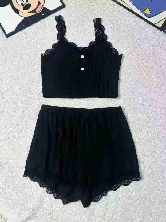 欧美辣妹时尚性感吊带上衣➕短裤睡衣家居服2件套装 部分可自行配套码数:S...
