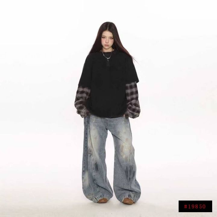 全清6.8元天猫在售款108件左右高品质男女同款港风宽松拼接假两件圆领/立领...
