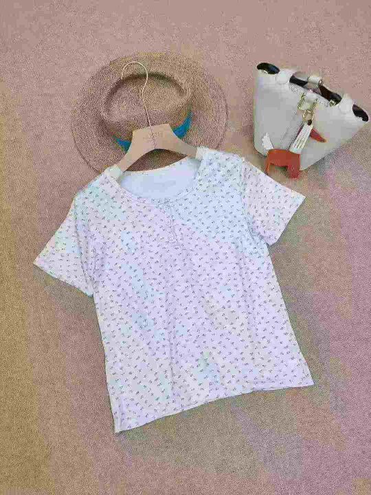 [月亮]:5.9清1005件[月亮]:小清新碎花冰丝纽扣短袖...