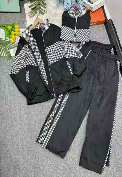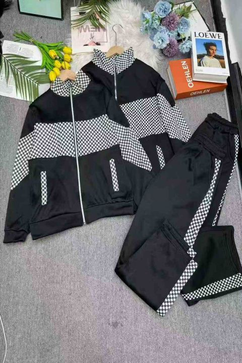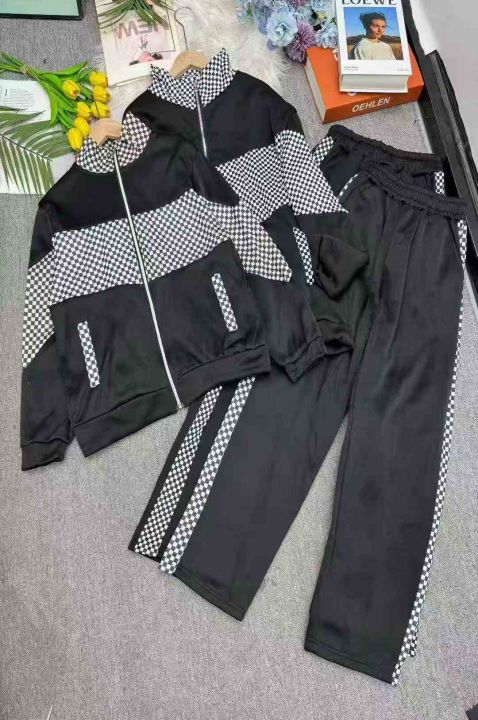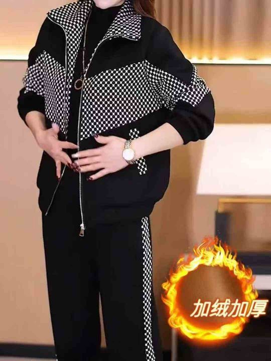 加绒加厚休闲时尚格子拼接立领外套阔腿裤两件套潮,独立包装,码数M-4XL,数量148套,分货加1,货号129#63