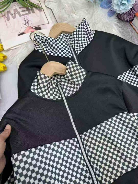 全清价11.8加绒加厚休闲时尚格子拼接立领外套阔腿裤两...