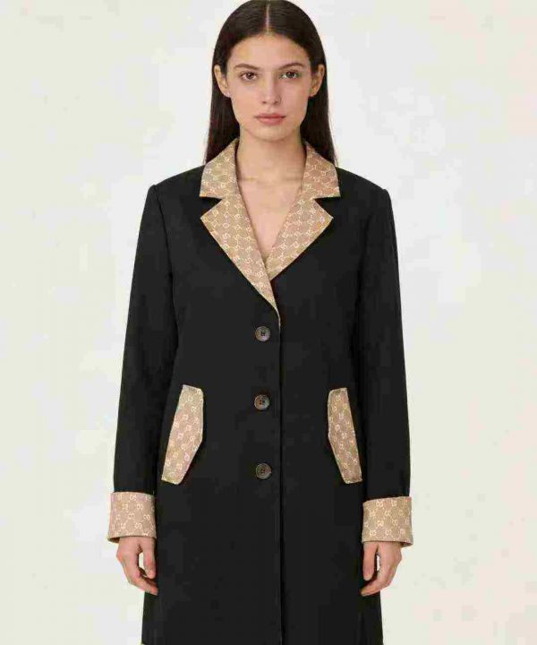 品牌女装风衣系列款,数量1275件,码数SML,杭州实体店货,黑色同一种款式3个花型,有内衬里布,全部防尘袋配衣架独立包装,吊牌价1680元,分货➕1随机配
