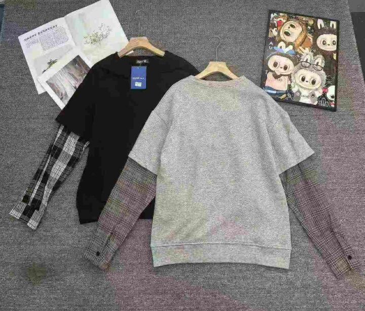 天猫在售款108件左右高品质男女同款纯棉毛圈港风宽松拼接假两件圆领/立领设计卫衣,码数M-3XL,独立包装带吊牌
