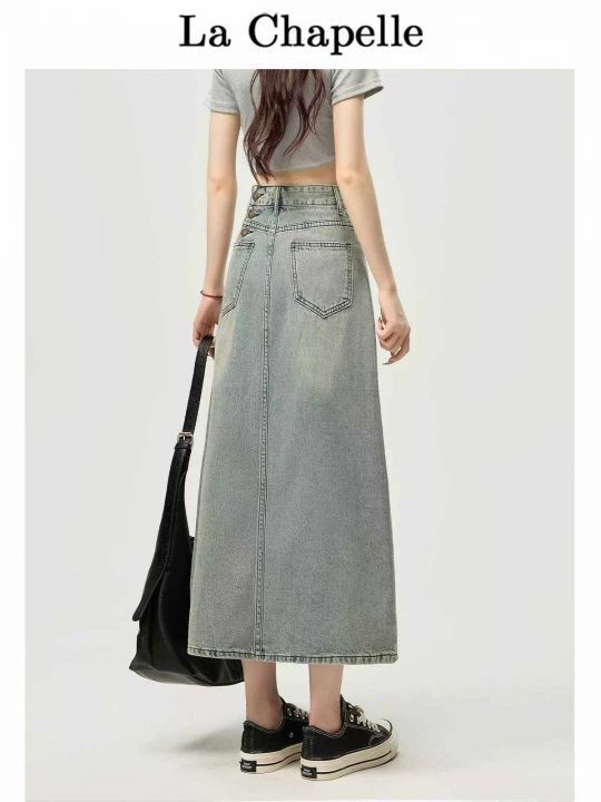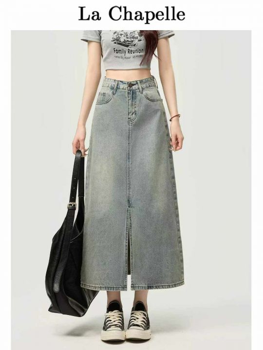 春夏季新款复古洗水棉设计款牛仔半身长裙,独立包装带...