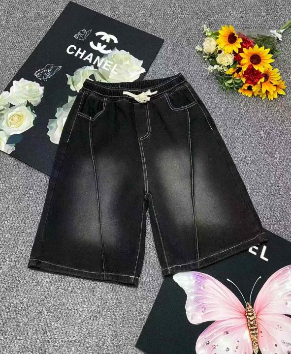 夏季新款高品质男士洗水棉松紧腰宽松阔腿牛仔短裤,独立包装带腰卡,码数S-...