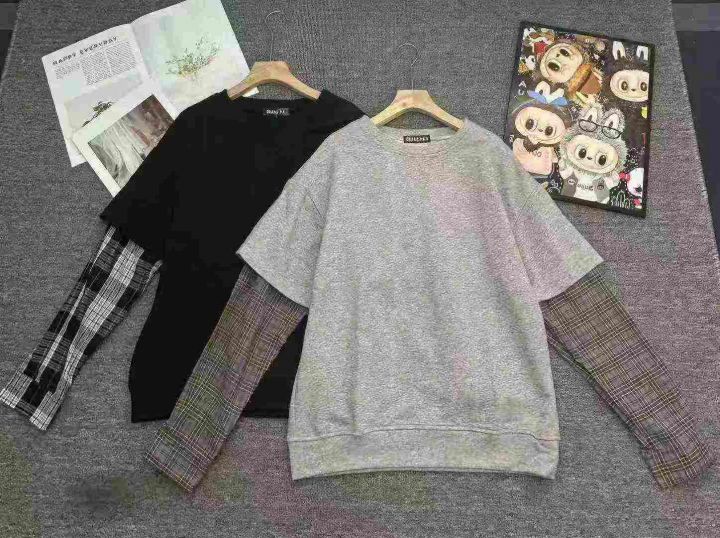 天猫在售款108件左右高品质男女同款纯棉毛圈港风宽松拼接假两件圆领/立领设计卫衣,码数M-3XL,独立包装带吊牌