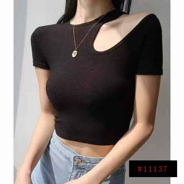 [福]纯欲风设计感镂空修身短款T恤衫285件,码数2~5码,单款黑白两色,独立包装。