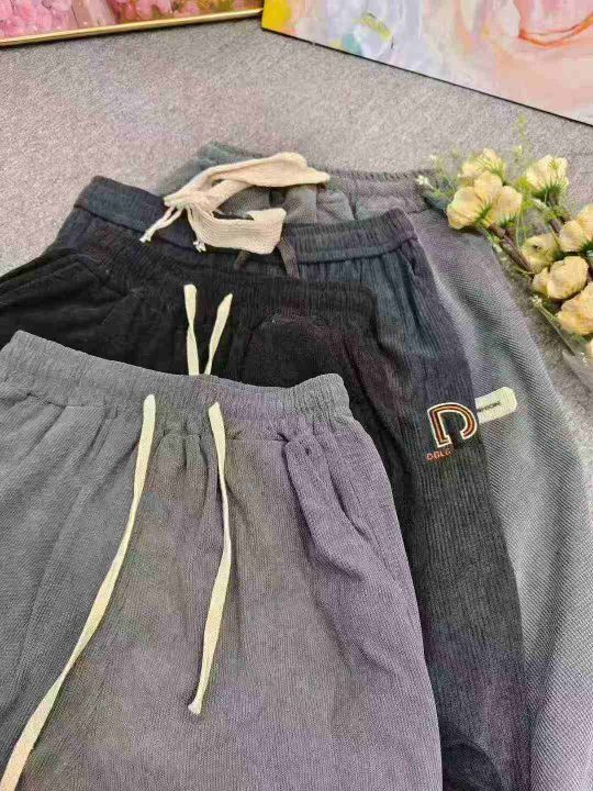 侧边条纹灯芯绒男冬季加绒加厚潮牌宽松束脚裤子,整款三色,独立包装M-3XL...