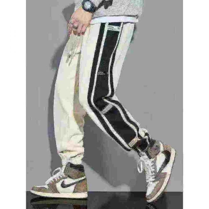 侧边条纹灯芯绒男冬季加绒加厚潮牌宽松束脚裤子,整款三色,独立包装M-3XL,800件左右,9.5清,分+1