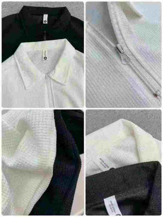 华夫格半拉链短袖190件8.9,Polo领,单款2色,码数M-4...