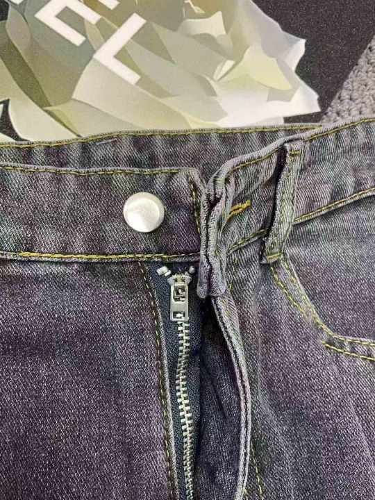 春秋新款网红复古洗水棉直筒阔腿牛仔裤,独立包装带腰...