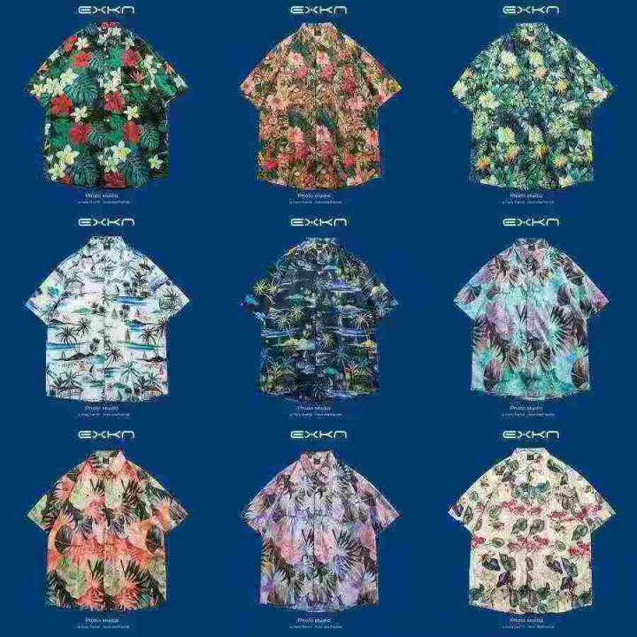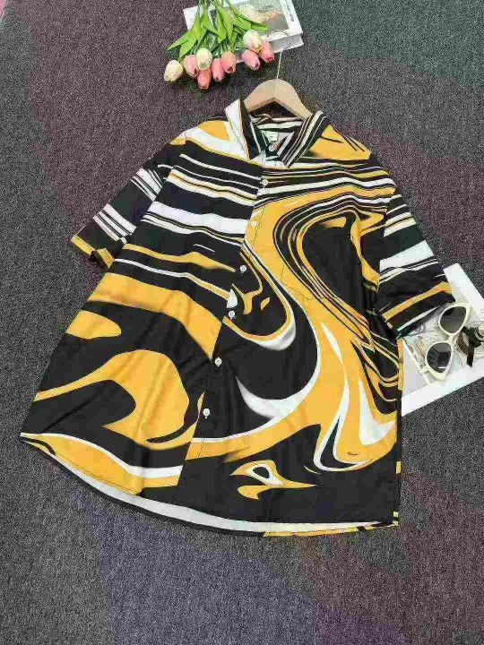 欧洲站夏季新款男士衬衫夏日风情时尚短袖免熨烫翻领衬...