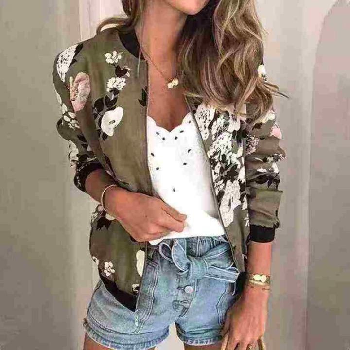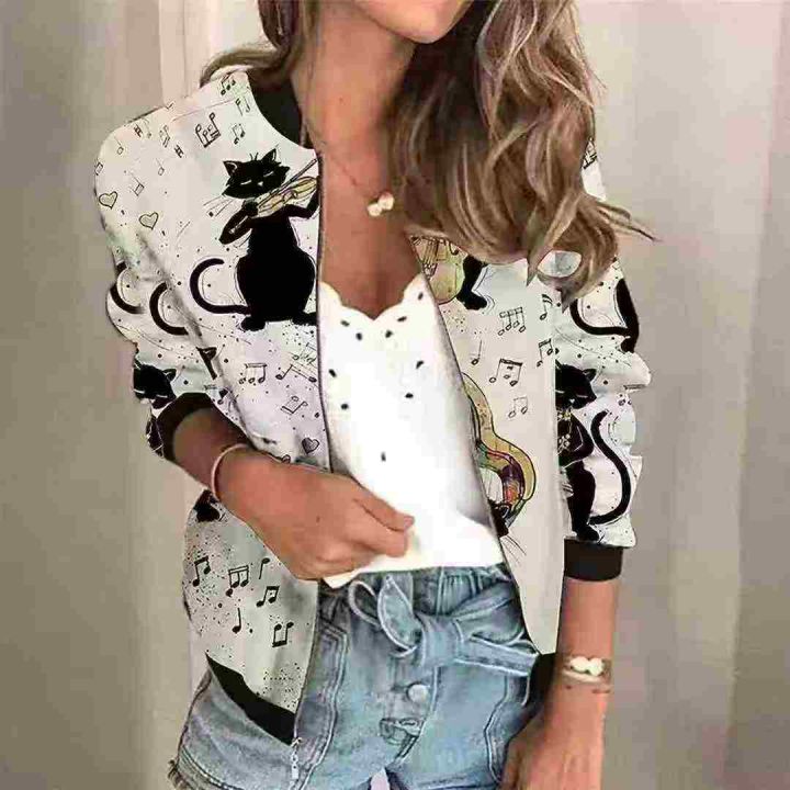 6.8清450件欧美风印花拉链开衫长袖外套女夹克 码数S-3XL 独立包装