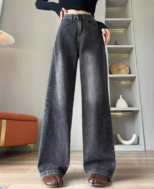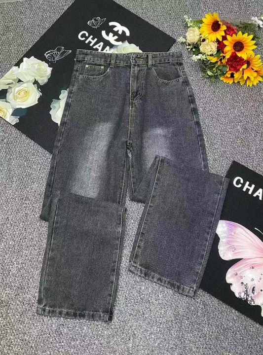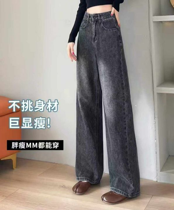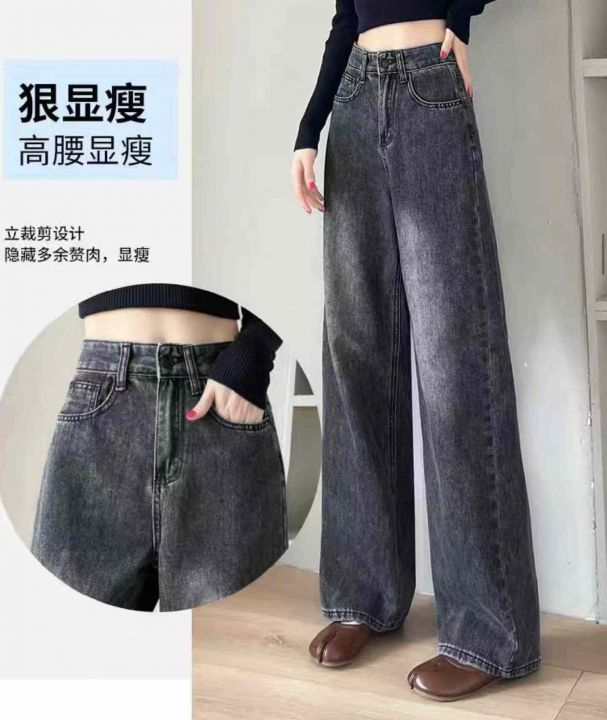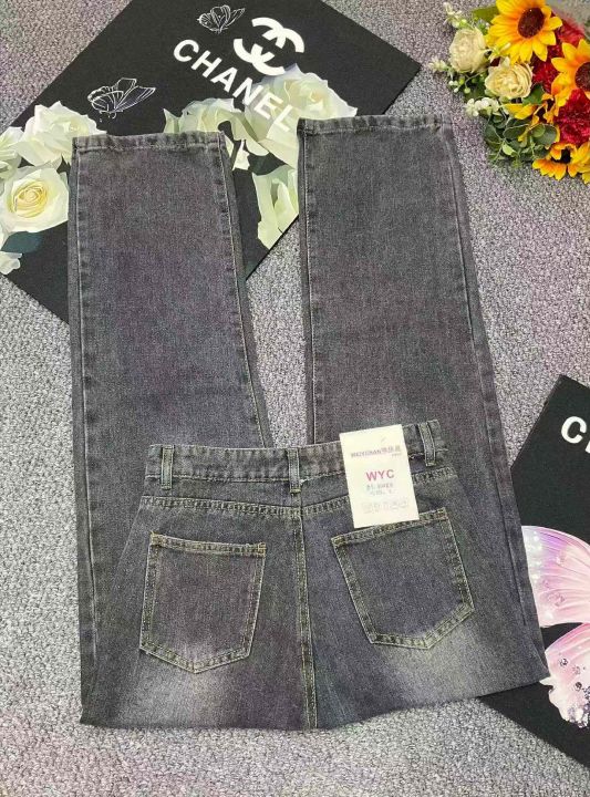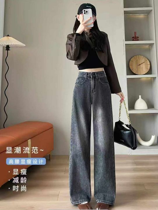 春秋新款网红复古洗水棉直筒阔腿牛仔裤,独立包装带腰...