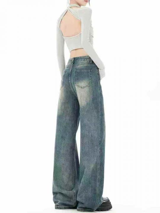 美式阔腿高腰宽松设计感直筒女牛仔裤,码数s-XL,独立...