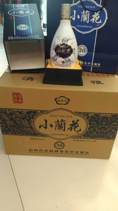 70多块钱一箱杏花村小蘭花30酒,53度和42度,高端手工盒,一箱6盒,带三个手提袋,有个几百箱