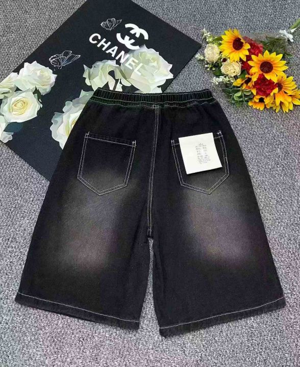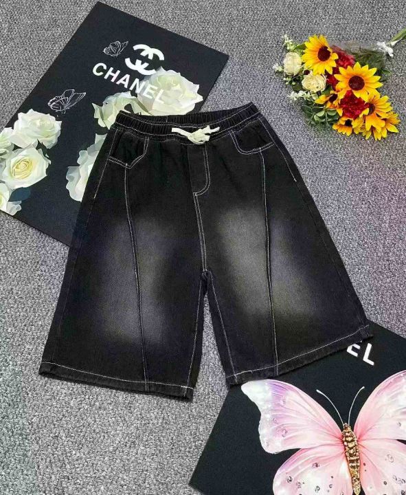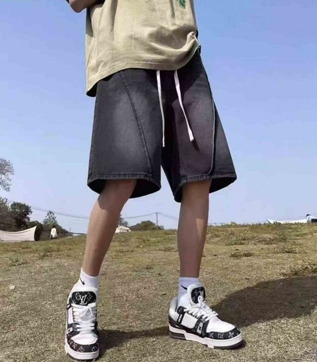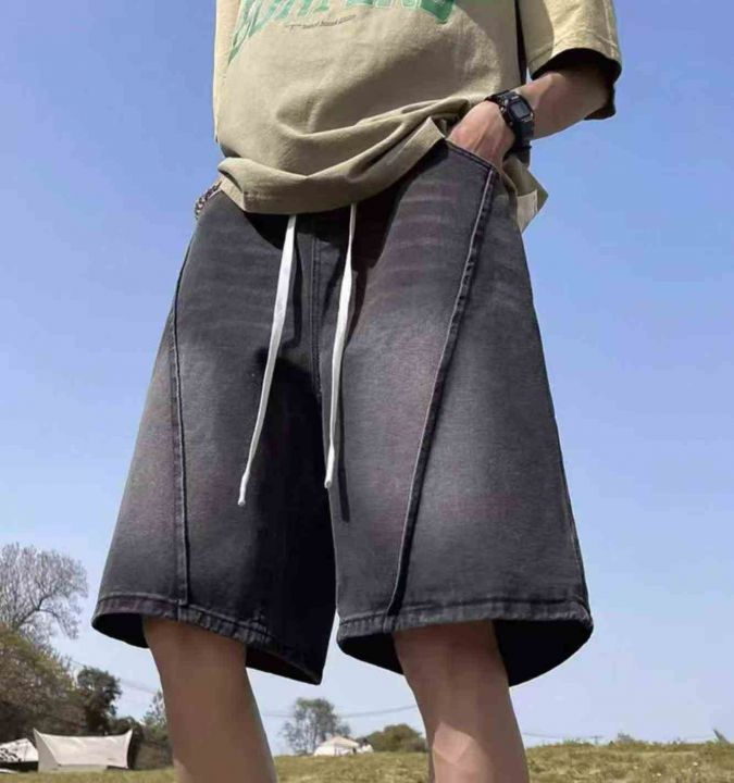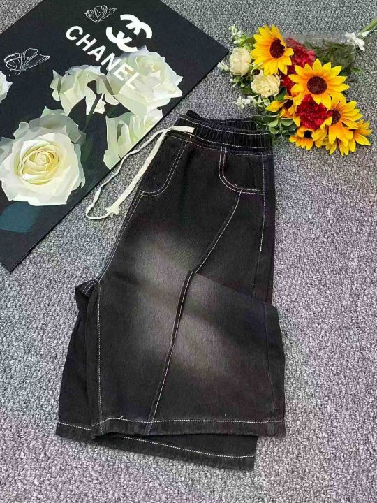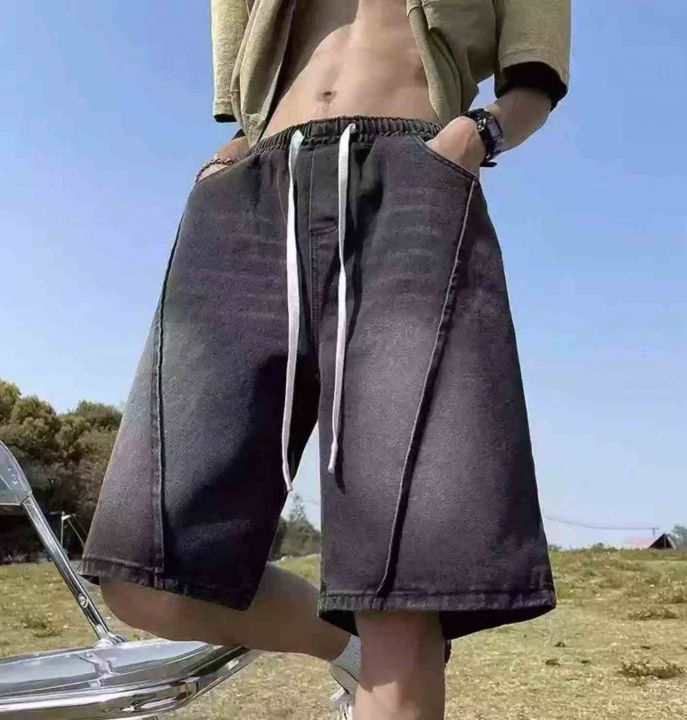 夏季新款高品质男士洗水棉松紧腰宽松阔腿牛仔短裤,独...