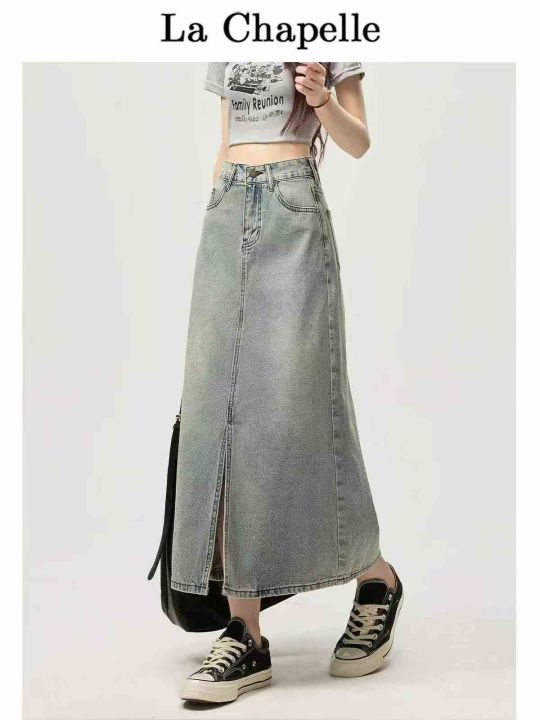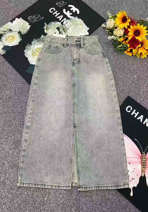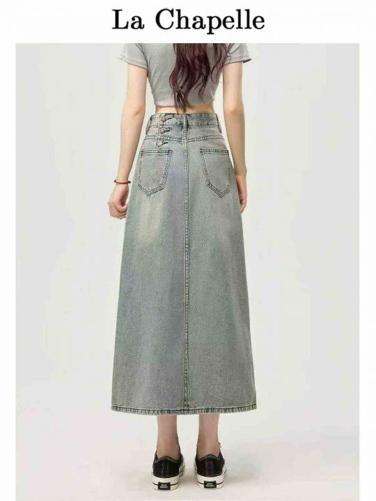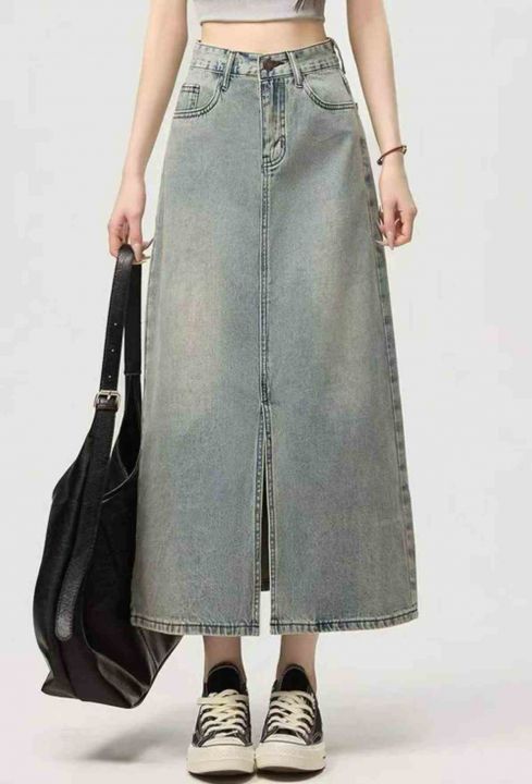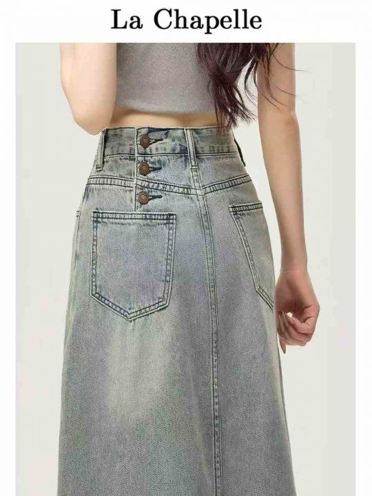 春夏季新款复古洗水棉设计款牛仔半身长裙,独立包装带...