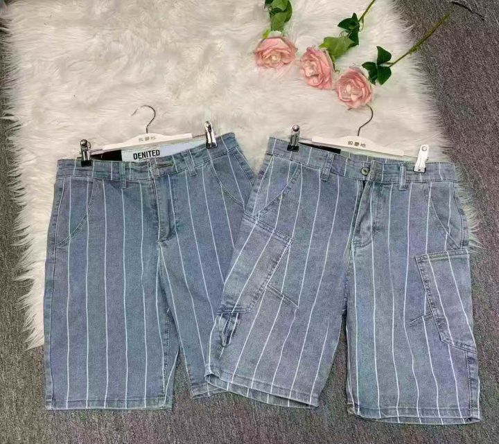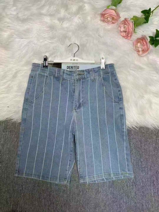 弹力条纹短裤男生外穿夏季薄款休闲中裤网红潮流百搭五分牛仔裤300件,图片款式,独立包装带腰牌,尺码M~L福利价价8.8元