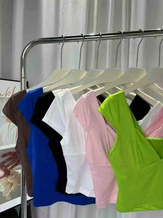 19000多件纯欲性感低胸v领泡泡短袖t恤女夏季甜辣妹绝美显身材修身上衣,尺码S~4XL,面料软糯高弹力,福利秒杀3.8