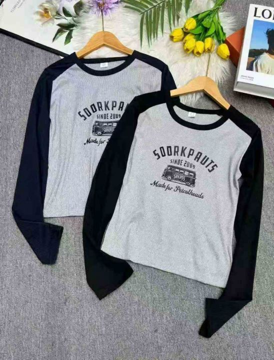 全清价6.5撞色插肩长袖修身显瘦螺纹辣妹T恤,独立包装...