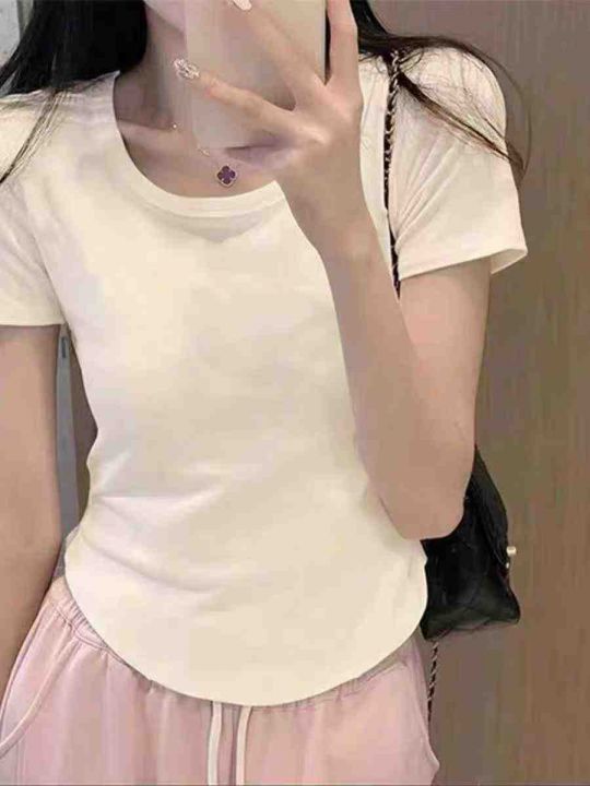 ☕️纯棉辣妹T火龙果色正肩短袖t恤女夏季欧货收腰显瘦...