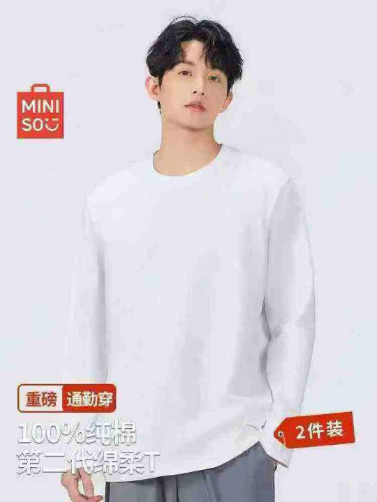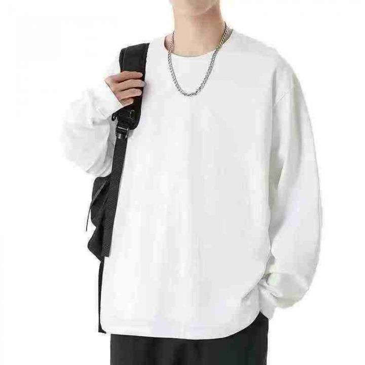 ☕️纯棉220克纯色男士长袖t恤新款春秋潮流ins宽松休...