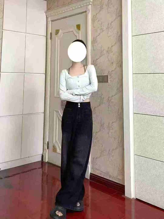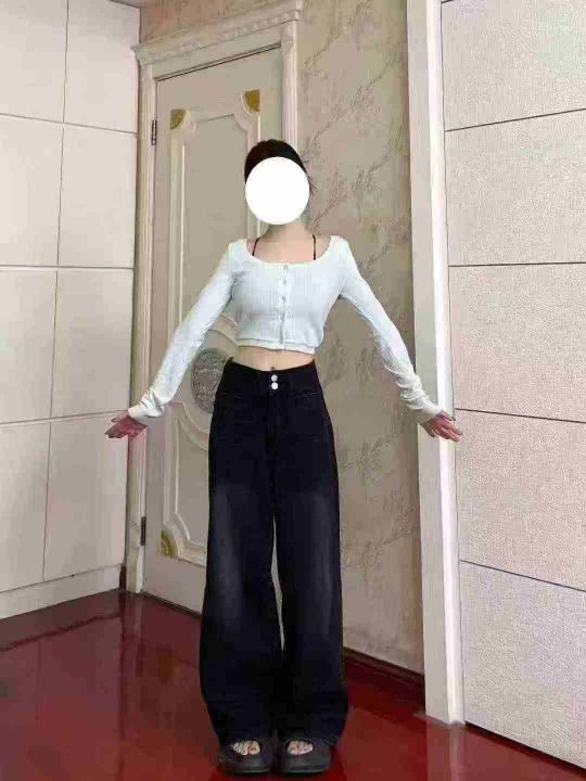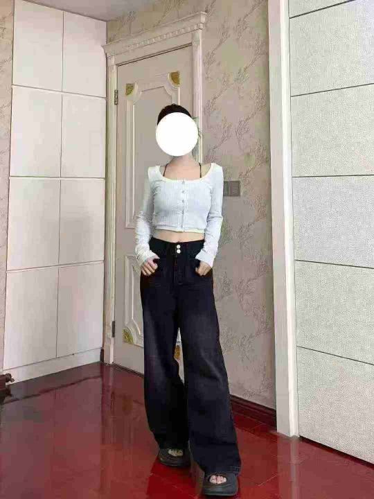 黑色弹力高腰直筒牛仔裤女大码胖mm梨形身材宽松显瘦阔腿裤子600件,独立包装带吊牌,有弹力,尺码S~4XL,货品干净整洁,全清福利价9.8元,分货➕1