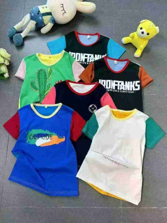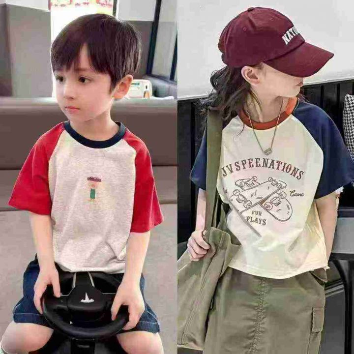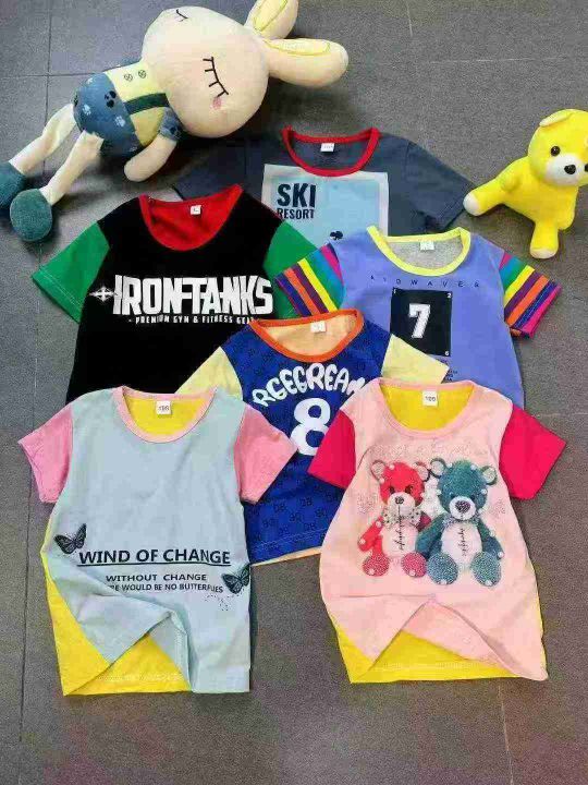 上身儿童短袖[太阳]全清3.98,6800件,码数S-XL,适合1-6岁。 男女童纯棉短袖t恤夏装新款儿童拼接插肩袖休闲宽松宝宝短袖T恤,糖果色色,颜色多,图案漂亮,不仅限图片款,上身效果巨巨好看,无美颜,无滤镜原相机还原质感很好,面料100%纯棉,超低价[哇]太划算了[强]无独立包装,配小份100/200件起4.5