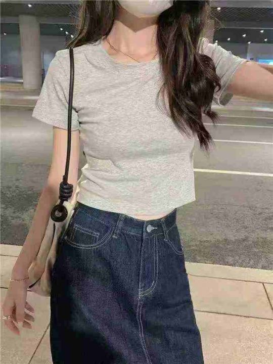 ✅80件辣妹复古撞色高腰短款体恤,尺码S-XL ,面料舒适透气有弹力,后领包...