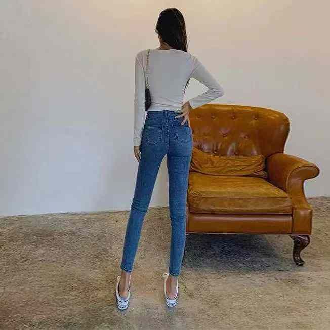 加绒牛仔裤女高腰冬季新款加厚保暖弹力紧身显瘦小脚铅笔裤150件,独立包装带防伪扣,尺码S~3XL,全清福利价9.8元,