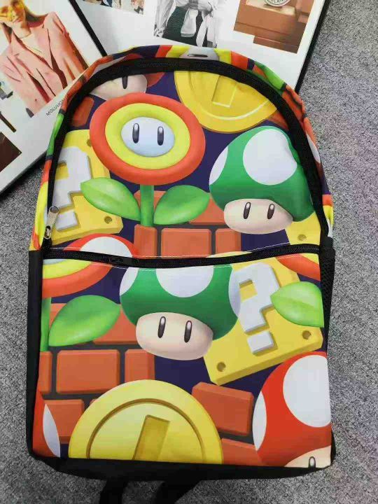 数量3700个左右,蘑菇图案书包为主,双袋双拉链,规格45*32,侧面有多色区分,分货➕1