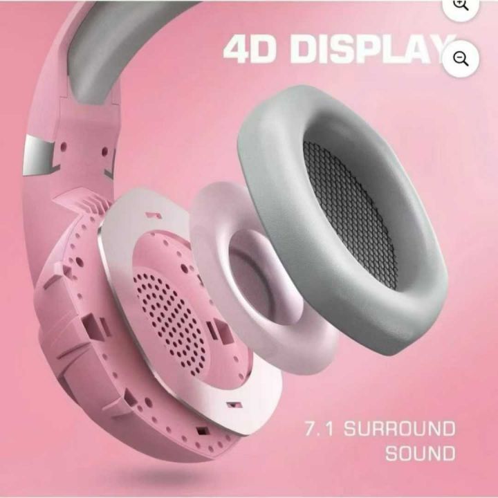 RUNMUS K2 粉色游戏耳机 7.1环绕声道,降噪 头戴式 清...