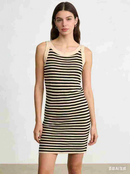 6.9元清条纹吊带背心针织连衣裙,面料柔软舒适弹力大...