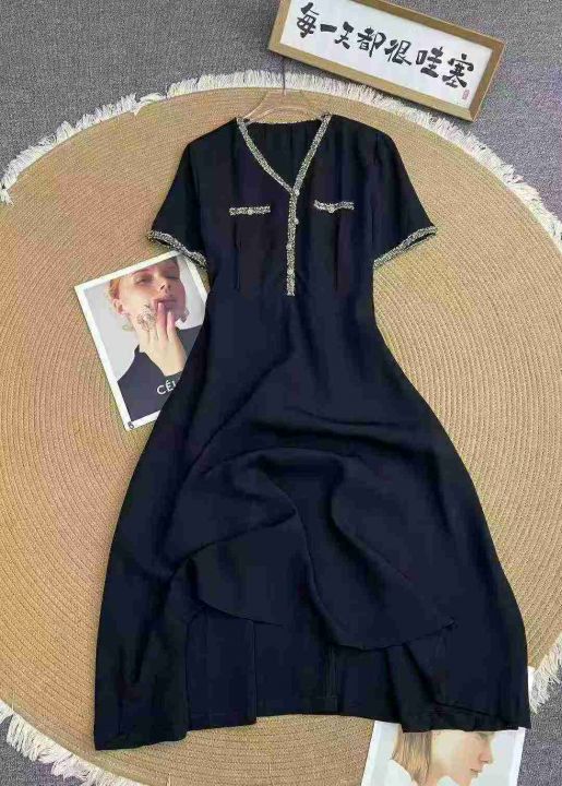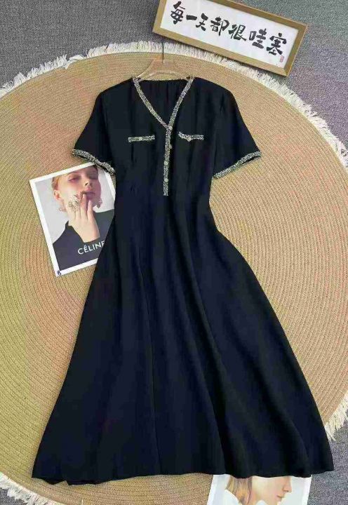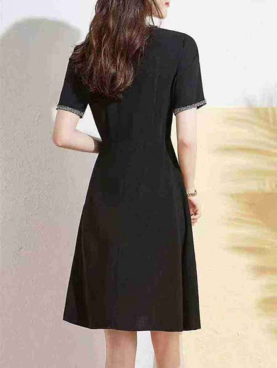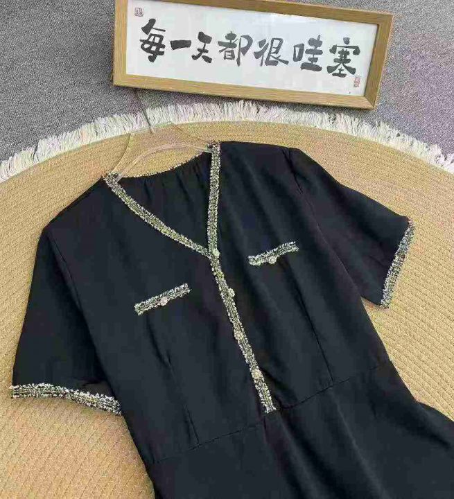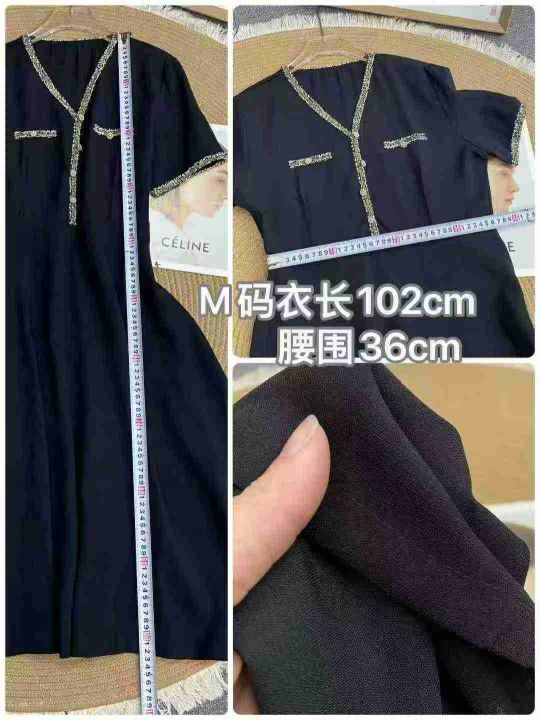 法式小香风连衣裙645件9.9,拼接V领,A字裙摆,侧腰拉...