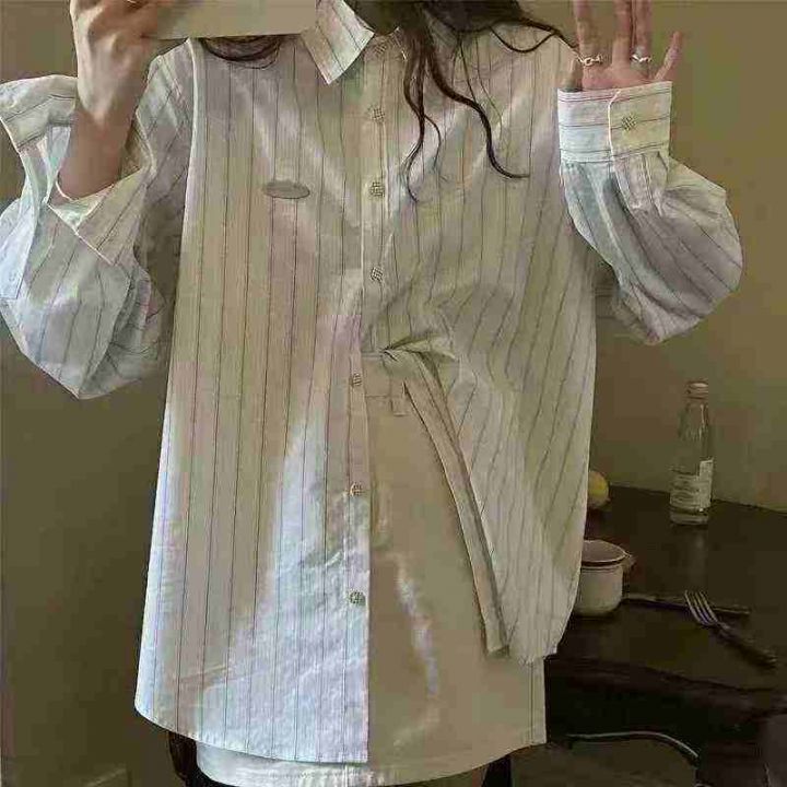 春秋新款叠穿大码宽松休闲显瘦长袖衬衫女法式衬衣设计感小众条纹上衣 独立包装 码数1-4码 数量382件 全清5.9