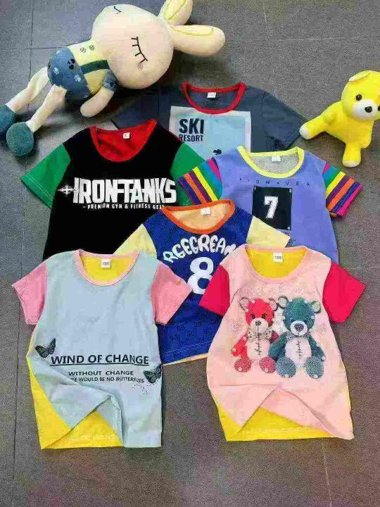 上身儿童短袖[太阳]全清3.98,6800件,码数S-XL,适合1-6岁。 男女童纯棉短袖t恤夏装新款儿童拼接插肩袖休闲宽松宝宝短袖T恤,糖果色色,颜色多,图案漂亮,不仅限图片款,上身效果巨巨好看,无美颜,无滤镜原相机还原质感很好,面料100%纯棉,超低价[哇]太划算了[强]无独立包装,配小份100/200件起4.5