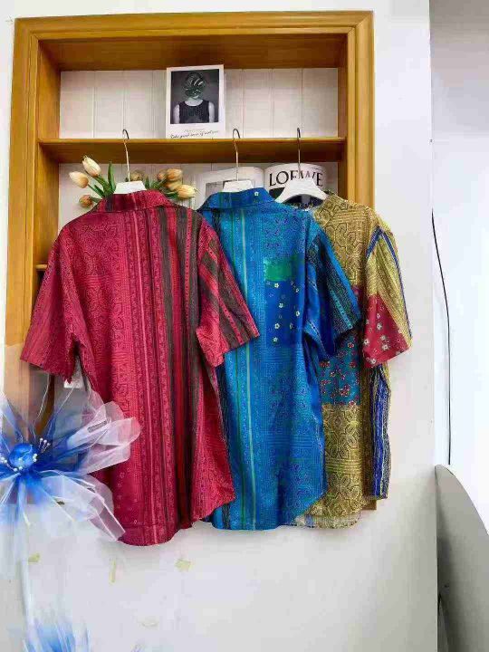 ① 夏季新款美式复古男女同款拼色设计短袖衬衣!版型宽松,整款三色,独立包装,码数M-3XL,数量400件左右,全清5.9元